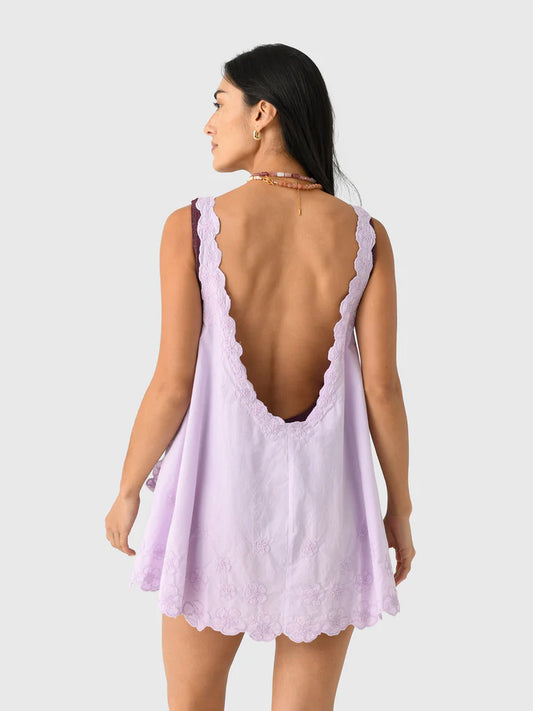 Poplin V-Back Mini Dress With Ric Rac Embroidery
