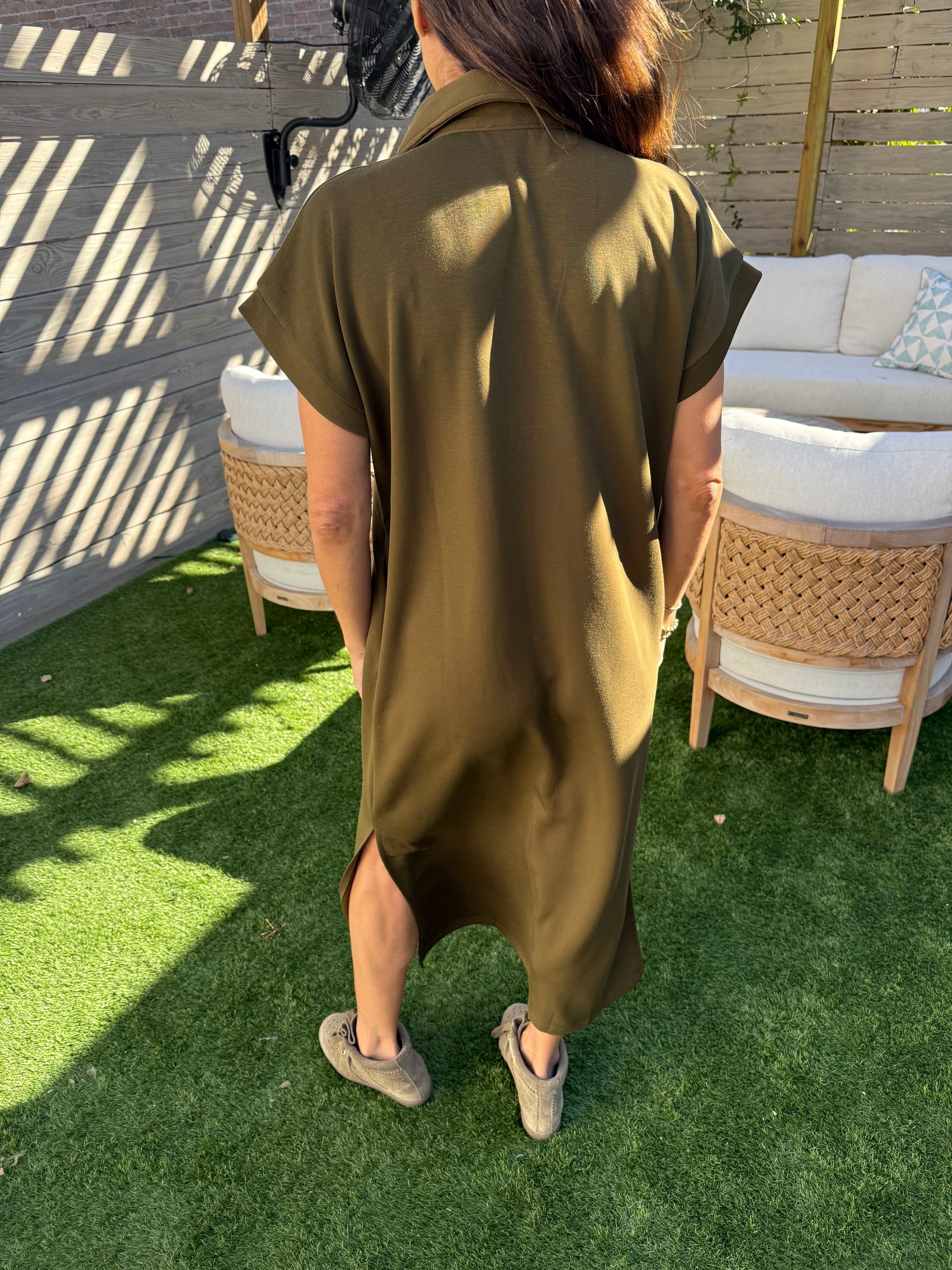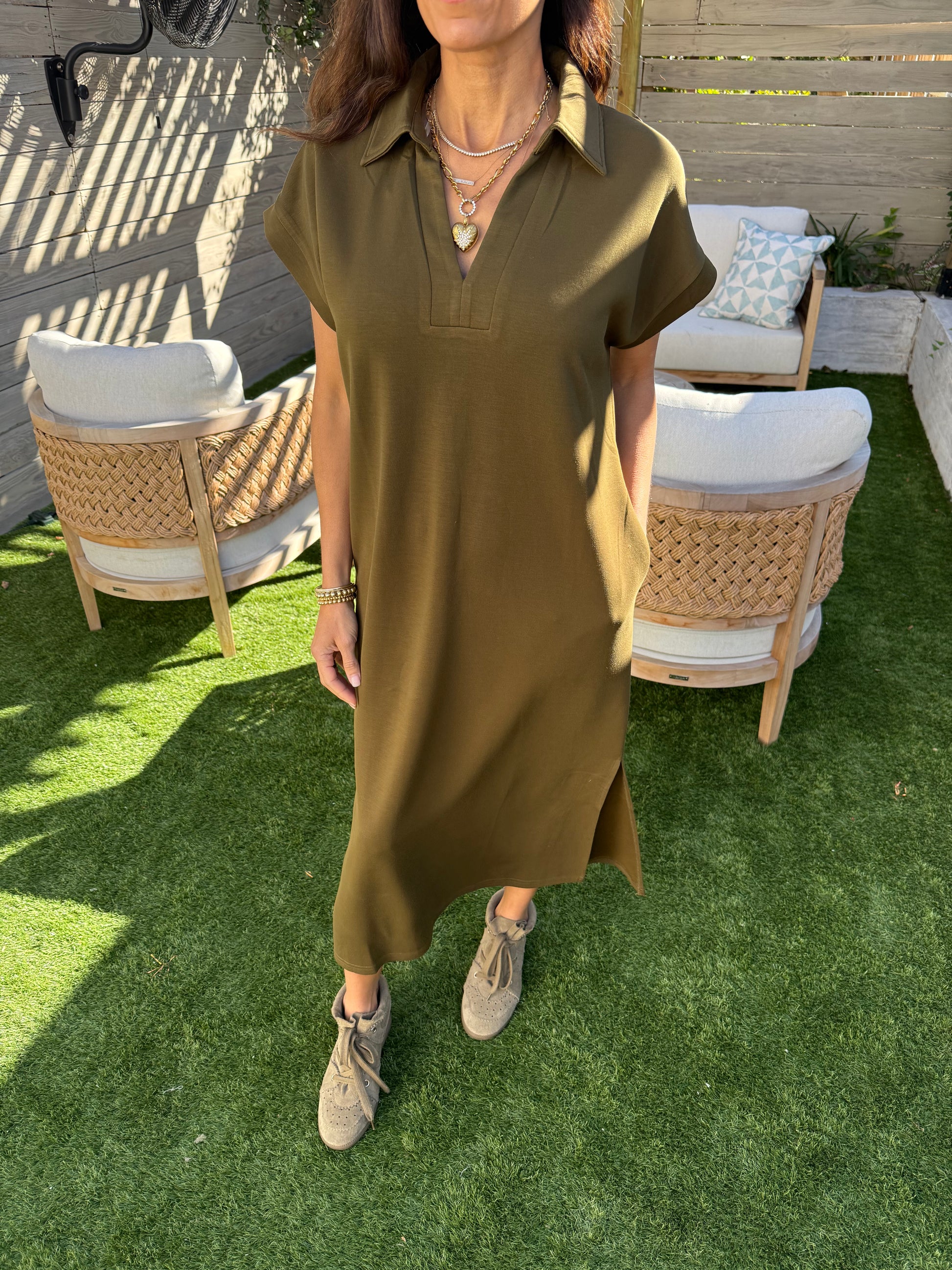 Slip into effortless style with the Adriana Midi Dress—a solid knit pullover that hits all the right notes. The split collar adds a chic twist, while practical side pockets keep your essentials close. Short sleeves and a flattering midi length make it perfect for everything from casual outings to weekend adventures. The side slit brings just enough movement and flair to keep things interesting. Unlined for breathable comfort all day long.