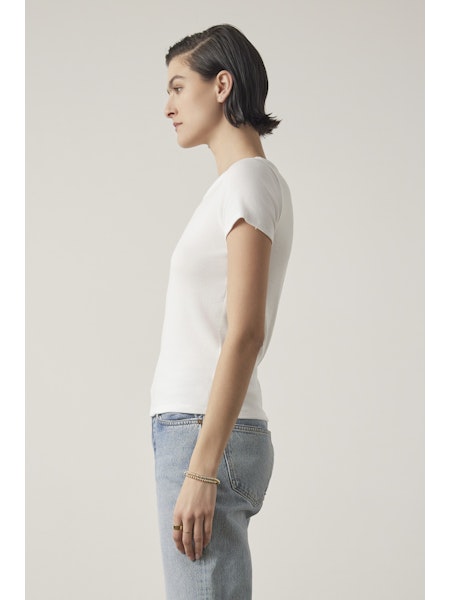 Get ready to fall in love with the Bedford Top. Made by Velvet by Graham & Spencer, this tee features a soft ribbed texture and a classic crew neckline, perfect for comfortable wear. The slightly cropped length and fitted silhouette give it a modern twist.