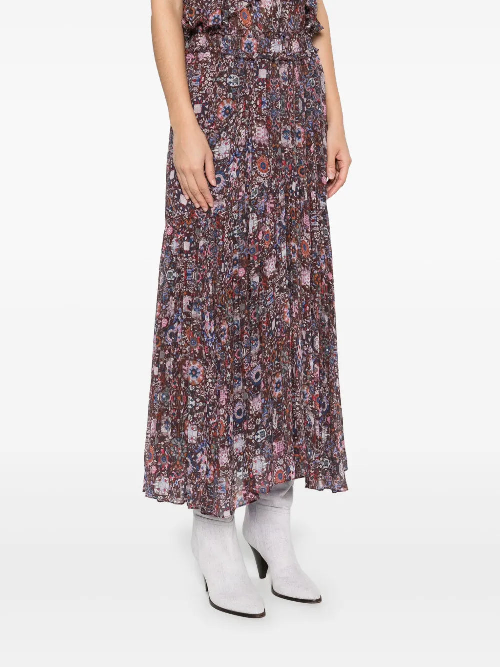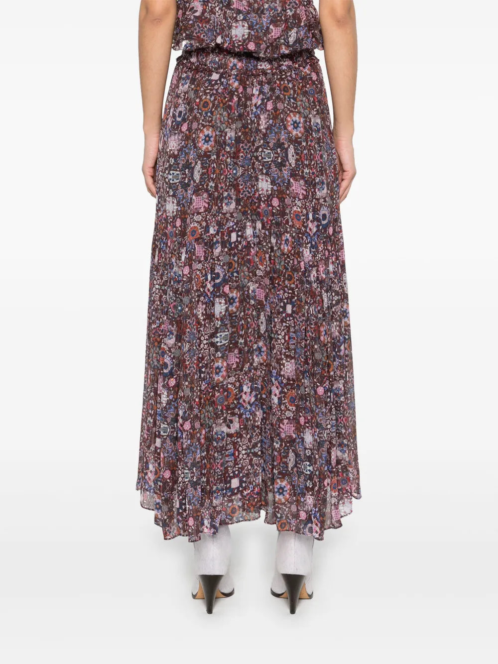 The Besma Skirt by Isabel Marant brings playful charm with its gathered printed georgette tapestry pattern and flared, flowing silhouette. Featuring an elastic waist for comfy wear, side pockets for convenience, and a plain-colored crepe bottom that adds a smooth finish, this skirt combines style and ease perfectly. Its gathered hips create a fun, flattering shape that moves with you all day long.