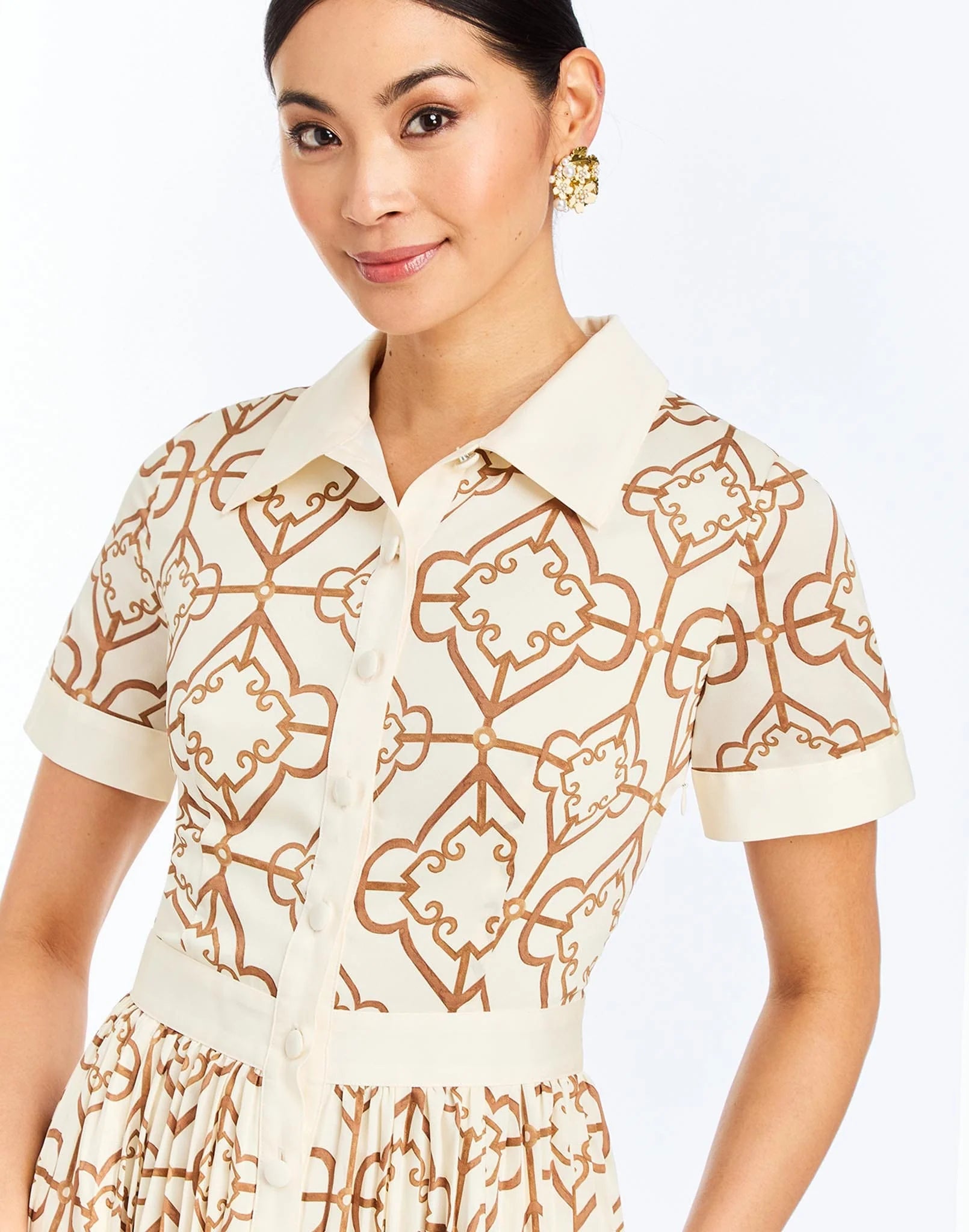 Embrace polished elegance with the Mestiza New York Billie Collared Shirt Dress! This sophisticated dress in Quatrefoil Tile offers a timeless design, perfect for making a refined statement. Its classic collar and tailored silhouette exude effortless chic, making it an ideal choice for both professional settings and elevated casual occasions.