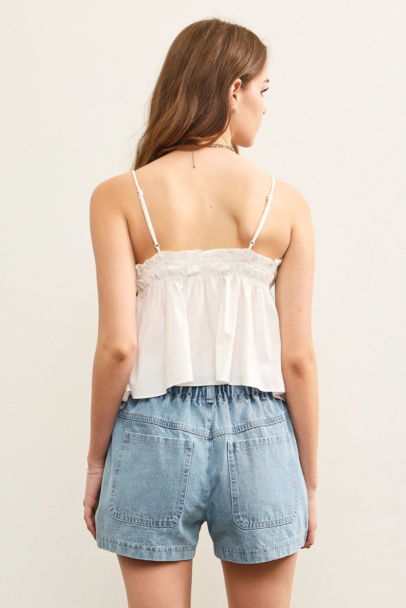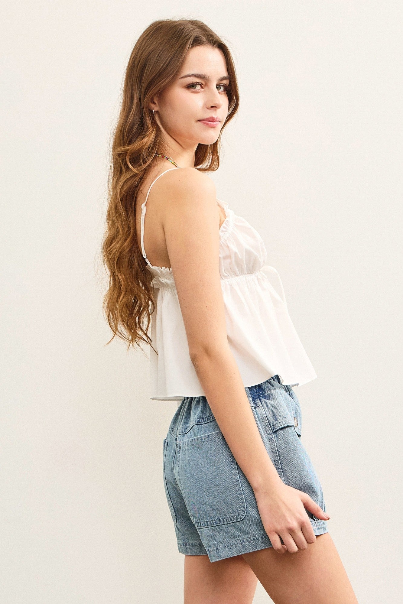 Step up your fashion game with the Billy Top! Featuring a flattering v neck crop, adjustable thin straps for all-day comfort, and an empire waist that adds a touch of playfulness. Say goodbye to boring tops and hello to the perfect mix of style and comfort!