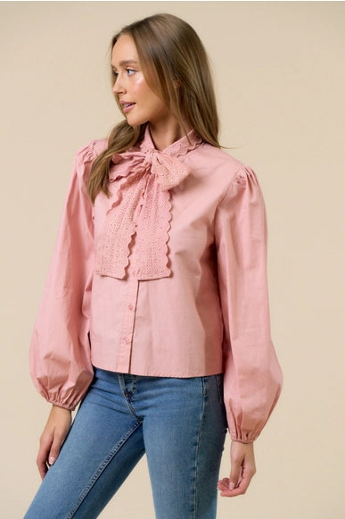 Meet your new wardrobe MVP! The Blaire Top brings effortless elegance with its charming bow neck tie and balloon long sleeves. Pair it with denim, maxi skirts, or trousers for a look that's equal parts romantic and refined. Tuck it in or wear it loose—this versatile beauty does it all with style and comfort.