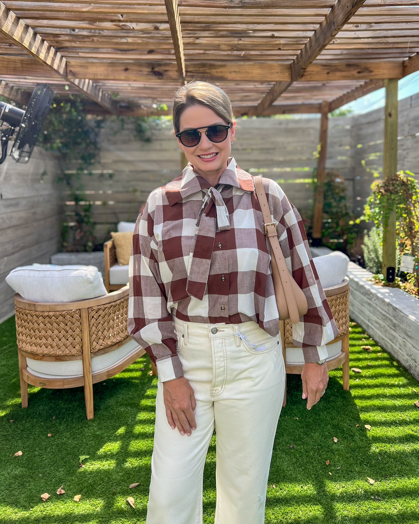 Cut from hand-loomed cotton, the Callie Shirt by Posse is designed for a relaxed fit. It features an oversized collar, detachable neck tie and centre-front buttons. Style yours with the Callie Shorts or jeans.