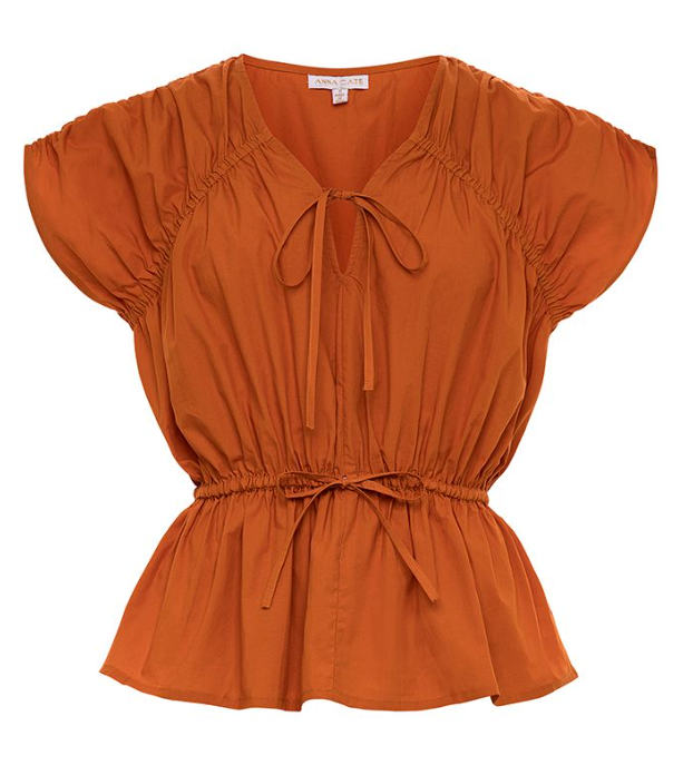 The Camille Top by Anna Cate is your new game day favorite with playful short sleeves and stylish ties at the waist and neck. Wear the neck ties loose for a relaxed open look or tie them up for a chic finish. A slight peplum adds a flirty flair that moves with you. Perfect for cheering on your team in style!