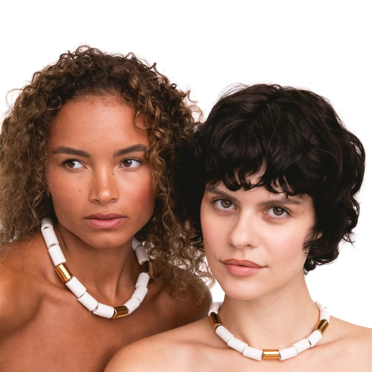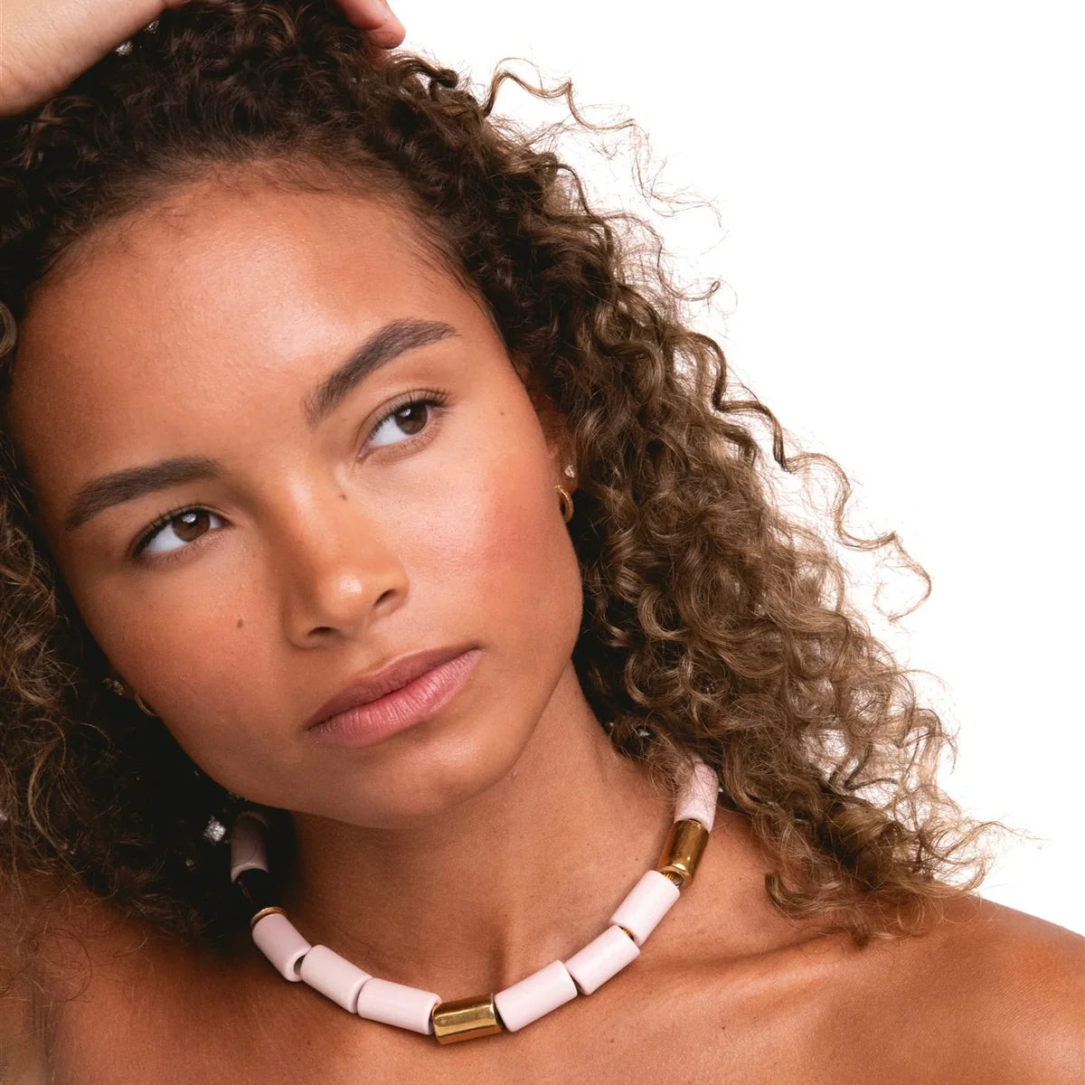 Add a pop of color and charm to your wrist with the Candy Bead Four Bracelet by Her New Tribe. Handmade in Austin, Texas, this playful bracelet features vibrant ceramic beads strung on knotted cording finished with brass ends. Its adjustable length ensures a perfect fit, making it a fun, statement accessory you’ll love to stack or wear solo.