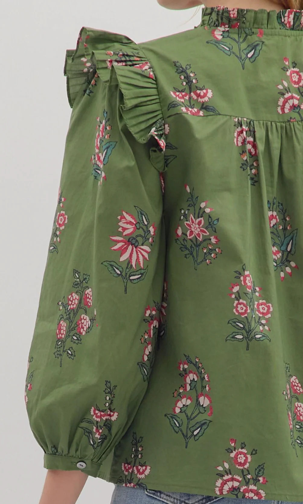Meet the Celeste Top—a playful essential featuring dramatic puff sleeves and charming pleated ruffles at the shoulders and V-neck. Made from lightweight, breathable 100% cotton that never feels sheer, it pairs button closures with effortless style. Perfect for day-to-night versatility.