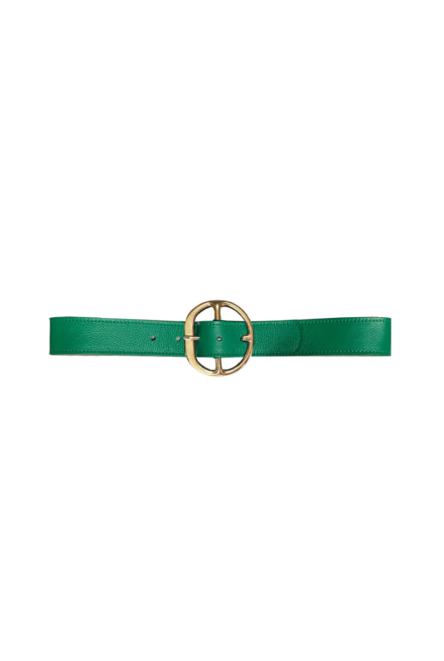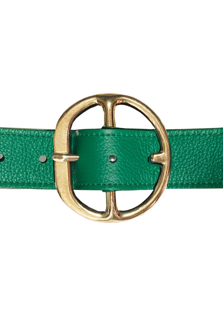 Rock your pants with the Chunky Hip Belt by Kim White! This statement belt features an oversized brass buckle and a 1-3/4" wide leather strap that easily fits through your pant loops. The leather has a soft pebble texture and glossy finish, backed with suede and expertly sewn. Strike a pose and show off your rock n' roll style! (Just remember to give it a shine every now and then - the brass may patina with age, but it's easy to restore its bright gold luster with some brass cleaner and a soft cloth.)