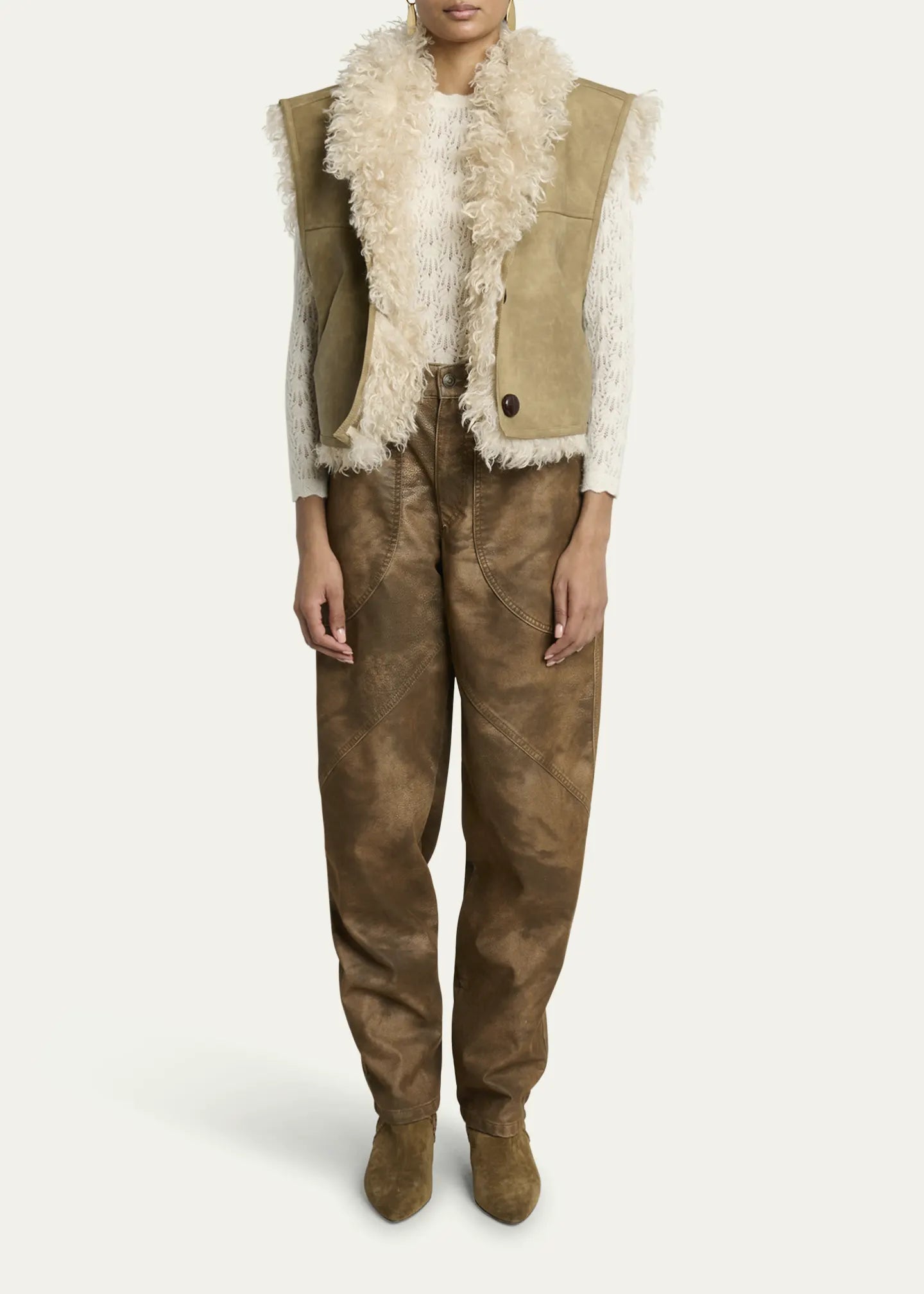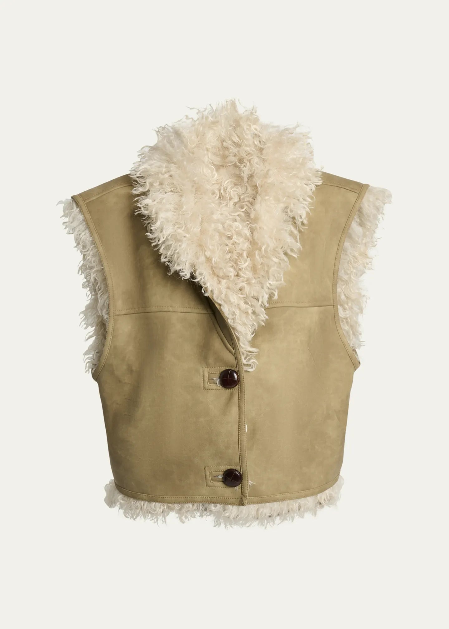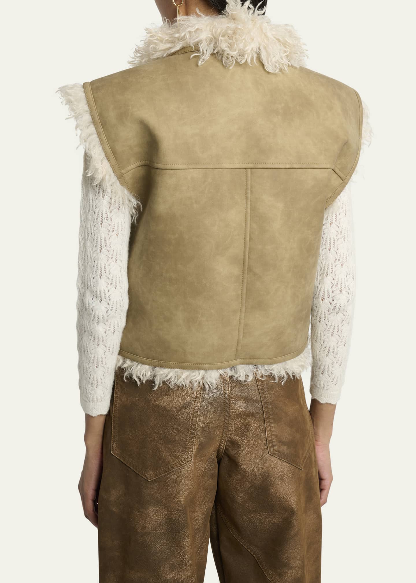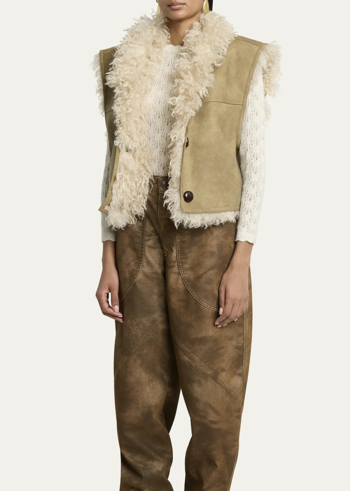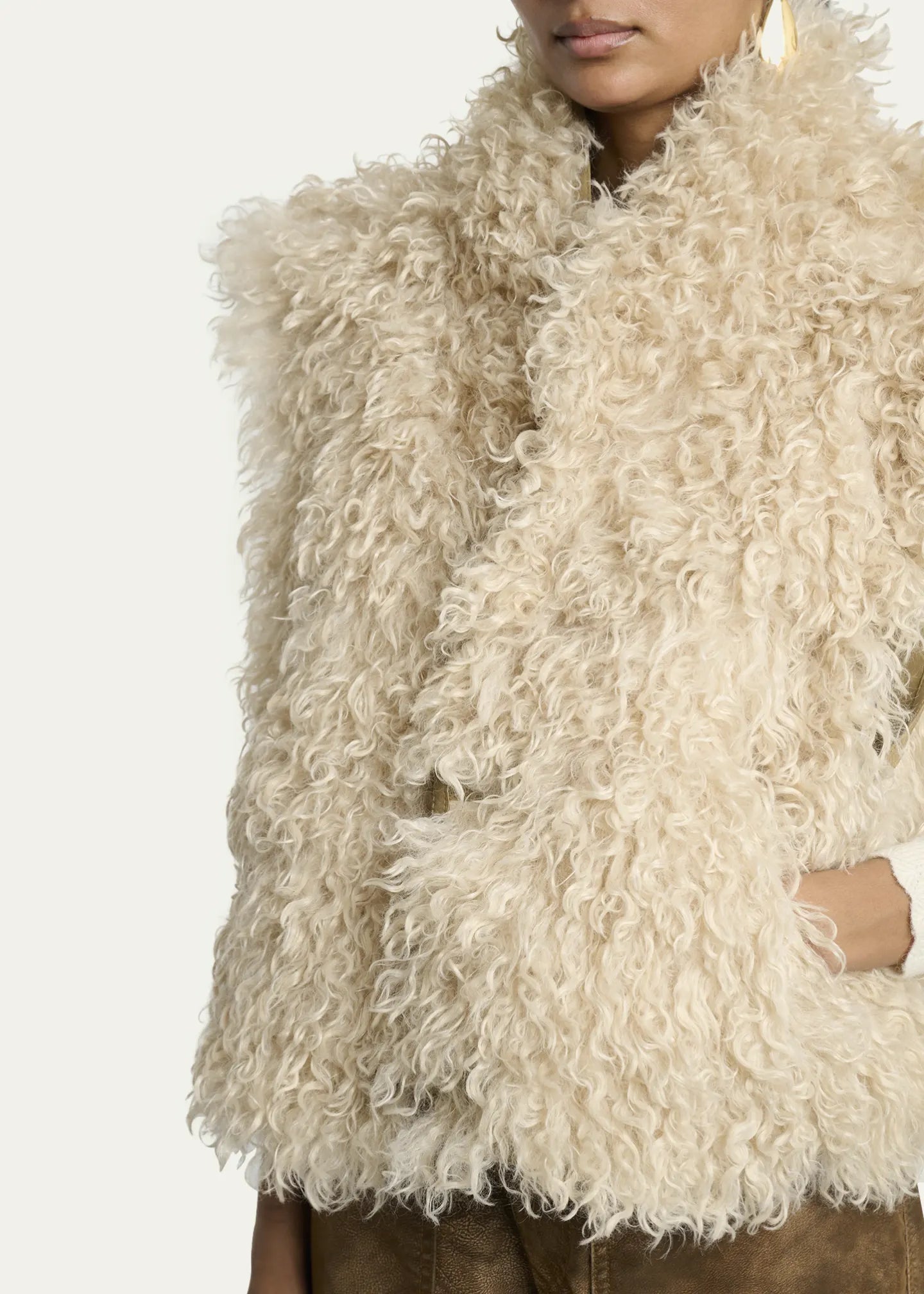 Stay cozy and stylish with the Clara Jacket by Isabel Marant, a playful reversible vest featuring a soft curly faux fur lining. Its shawl collar and sleeveless design offer a chic, boxy fit that’s perfect for layering. The cropped length and button-front closure add a fun, flirty touch to your look.