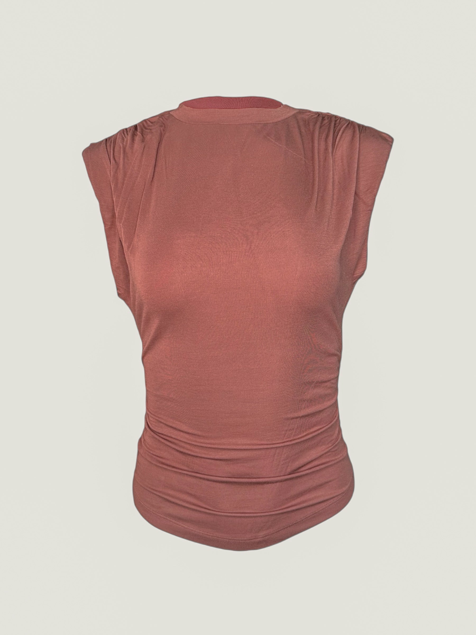 The Devani Top from Isabel Marant is a sleeveless jersey tee featuring soft draping and subtle shoulder pads for a touch of structure. Its hem falls just at the low hip, creating a blouson effect that cinches at the waist. Made from comfy cotton jersey, this top blends casual ease with a flirty silhouette.