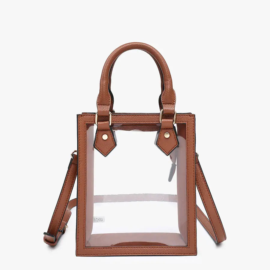 Get ready for game day fun with the chic Elise Clear Rectangular Crossbody Bag! Crafted from transparent plastic and accented with vegan leather, this bag keeps your must-haves visible and your style on point while you cheer on your team.