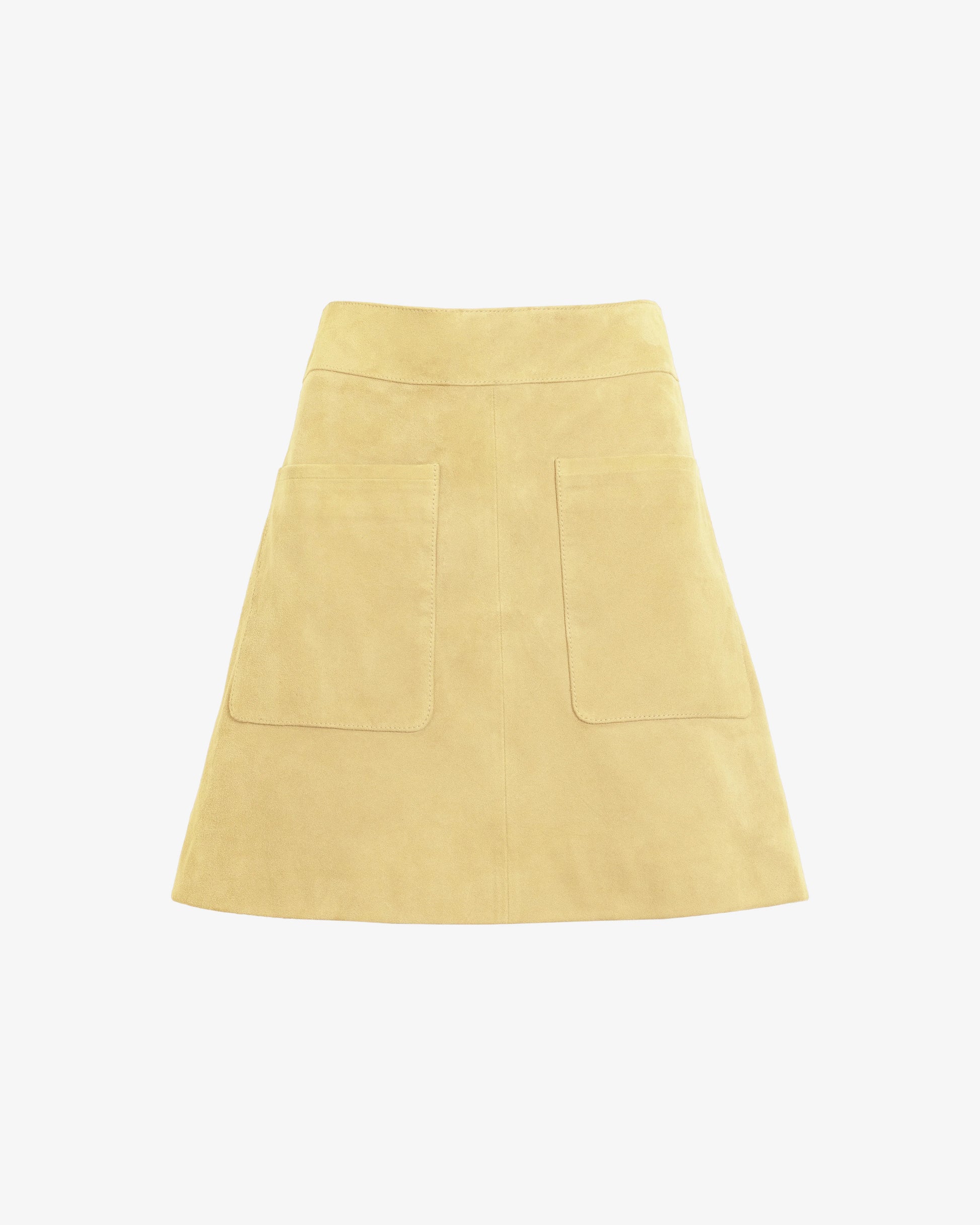 Designed in a soft-to-the-touch suede, the Fran Skirt by Tanya Taylor is a fall staple elevated with fresh detail and just the right amount of attitude. Featuring front patch pockets and an A-line fit, Fran delivers a playful, feminine feel with everyday polish and effortless charm.