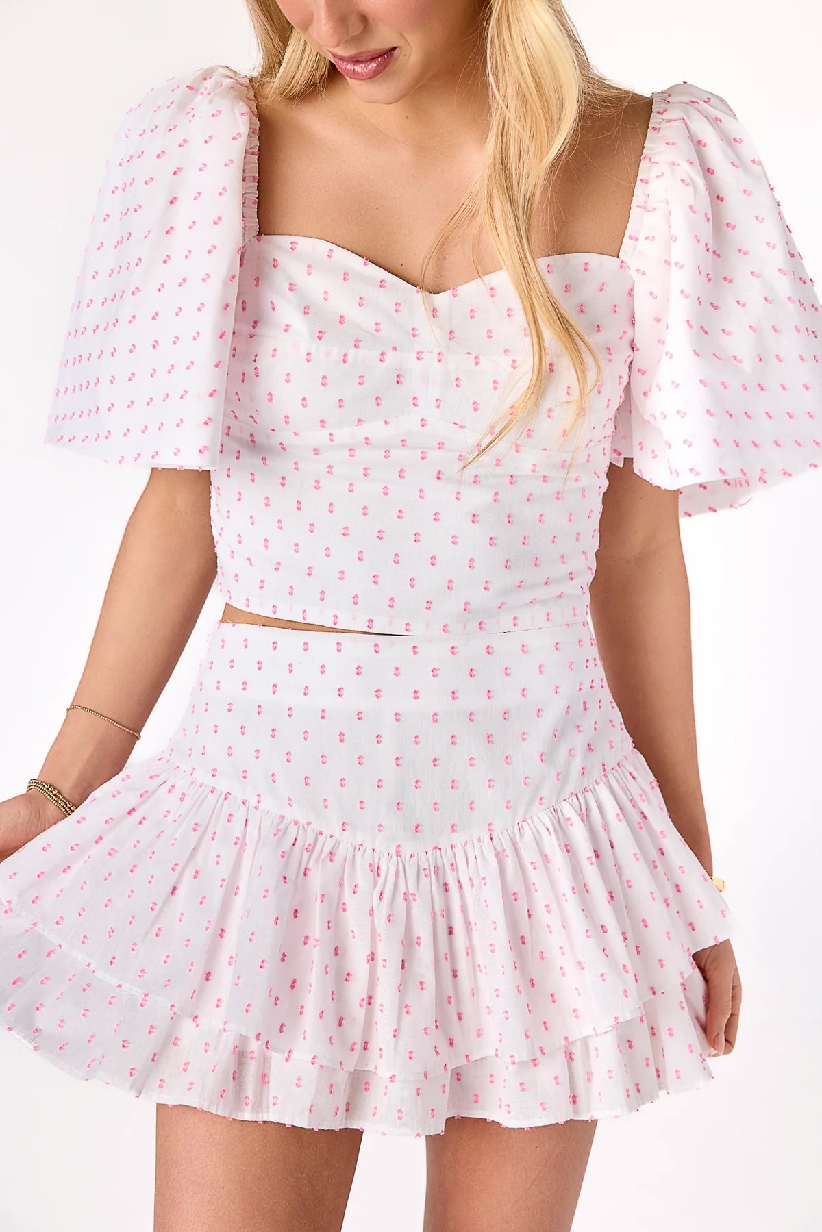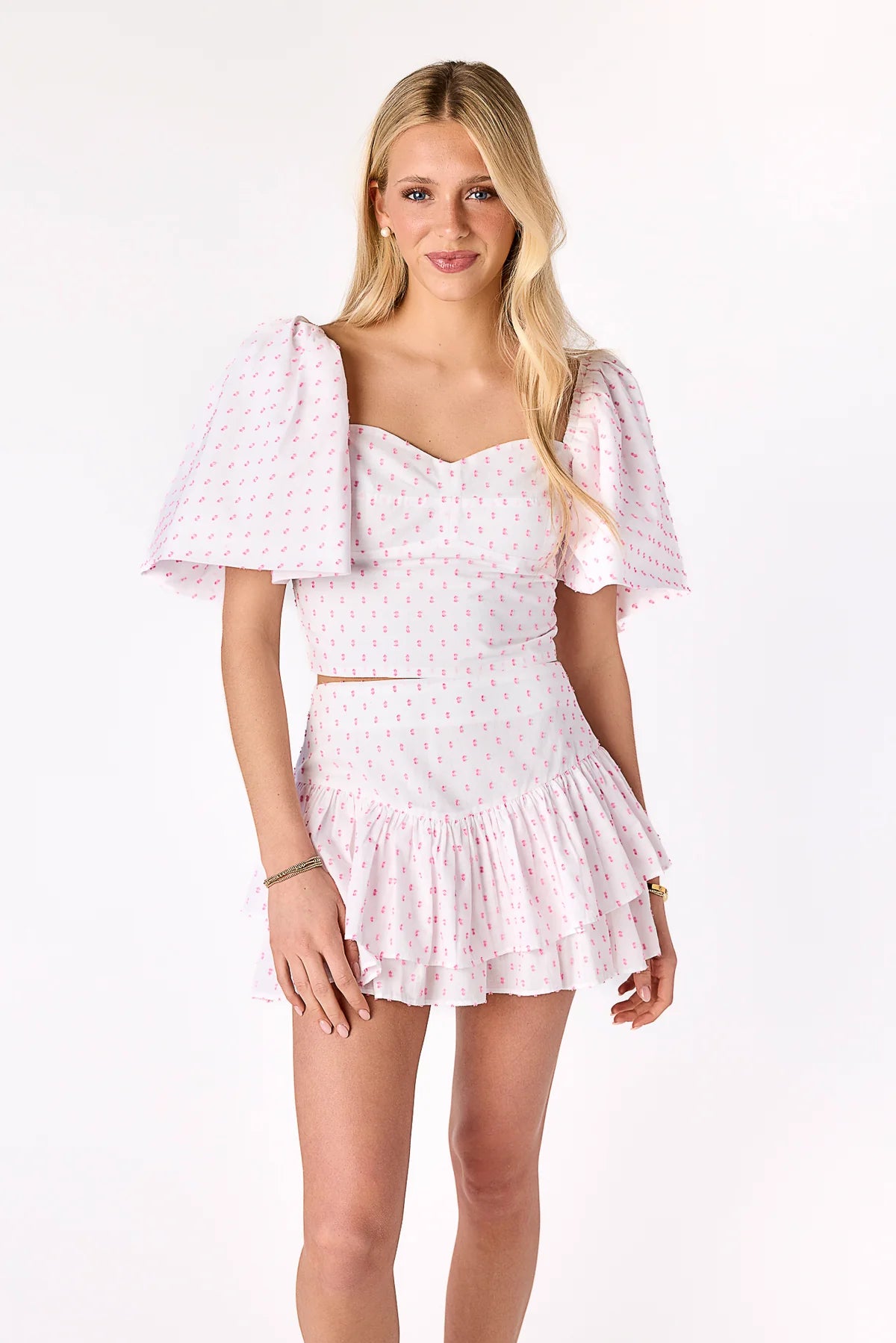 Cake For Dinner's Grayton Top is a charming addition to your look, featuring playful statement sleeves and a carefully designed back smocking panel that flatters your waist. The sweetheart neckline and center back zipper add a touch of whimsy and convenience to this versatile top, perfect for any occasion. Pairs perfectly with the Draper Skirt.