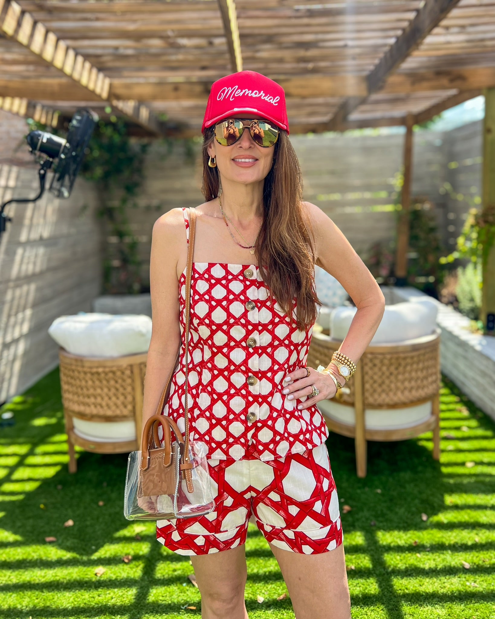 Add a playful touch to your game day look with the Harris Tank by Anna Cate. Featuring a whimsical cane print, delicate spaghetti straps, and a flattering square neckline, this tank brings fun and flair to your outfit. Buttons down the front add charming detail, while the design pairs perfectly with matching Lizzie shorts for a coordinated, spirited ensemble.