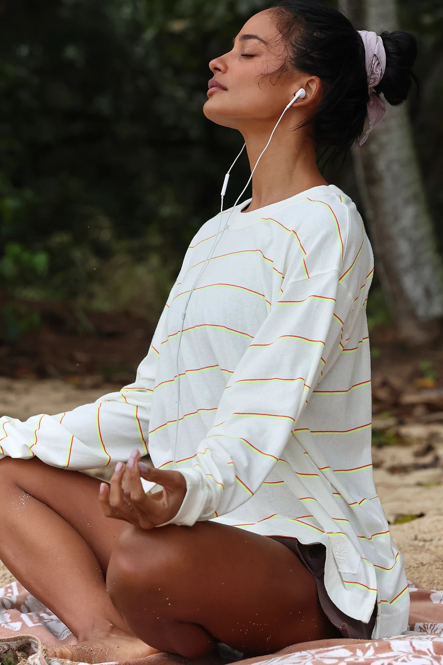 Stripes just got cooler. This FP Movement Hustle Striped Layer is your new layering MVP—wear it solo or under literally anything. The relaxed fit, dropped shoulders, and subtle side slits give you that perfectly worn-in vibe without the wait. Scoop neckline and defined seaming keep things interesting. Effortless, versatile, and ready to work as hard as you do.