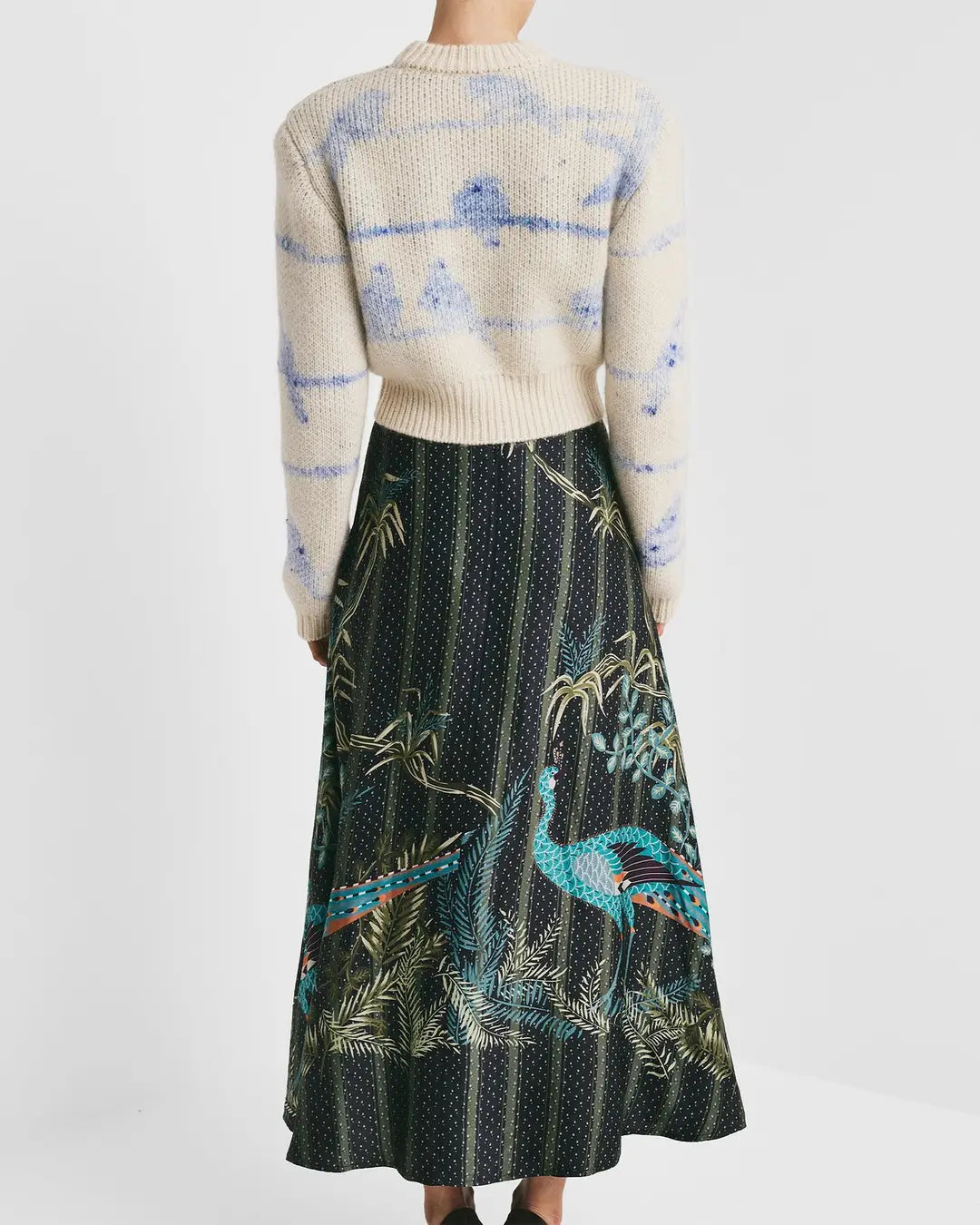 Cozy up in this Jacquard Knit Sweater featuring a charming bluebird detail that adds a touch of whimsy to your outfit. With a classic round neck and long sleeves, it’s perfect for layering or wearing on its own during cooler days. Fun, comfortable, and full of character—this sweater makes everyday style a little brighter.