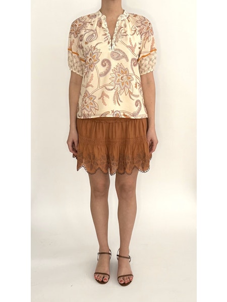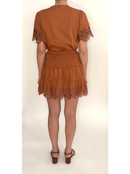 The Kylie Mini Skirt by Cartolina features charming eyelet details and a fitted waist that flatters your silhouette. Perfect for everyday wear, this playful skirt adds a touch of fun and femininity to any casual outfit.