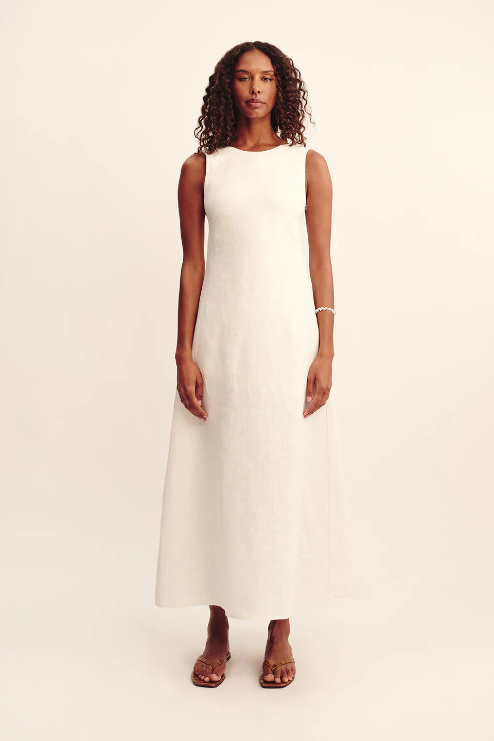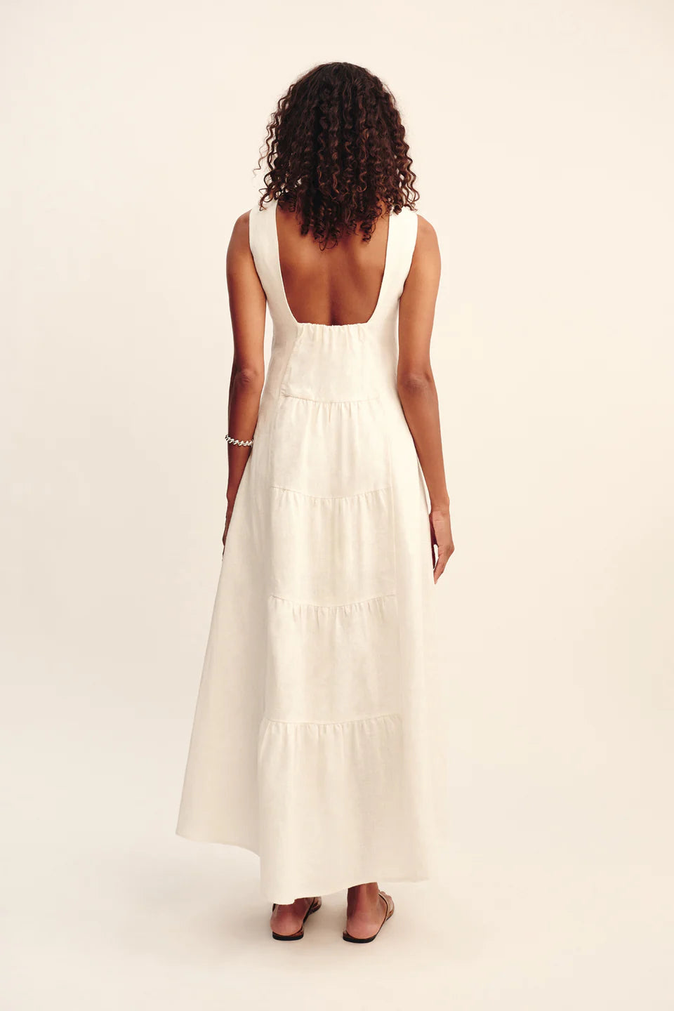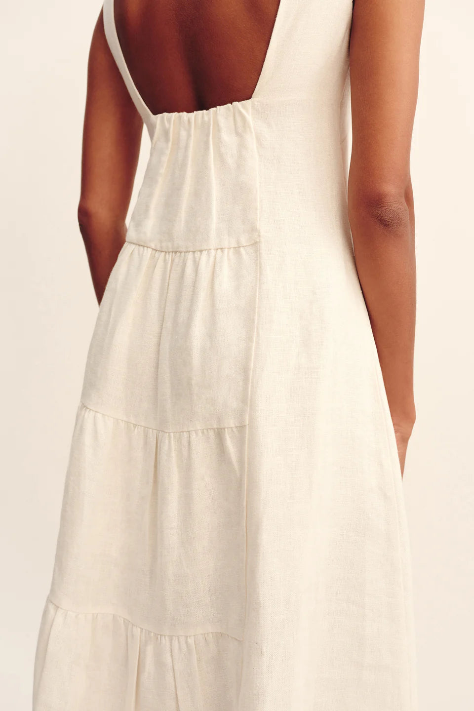 Get ready to turn heads in the Matilda Dress by Posse! Made with premium linen, this dress boasts a sophisticated high neckline and a jaw-dropping open back. The elasticated waistband cinches your silhouette, while the A-line skirt with tiered detailing adds a touch of playfulness. Perfect for any special occasion!