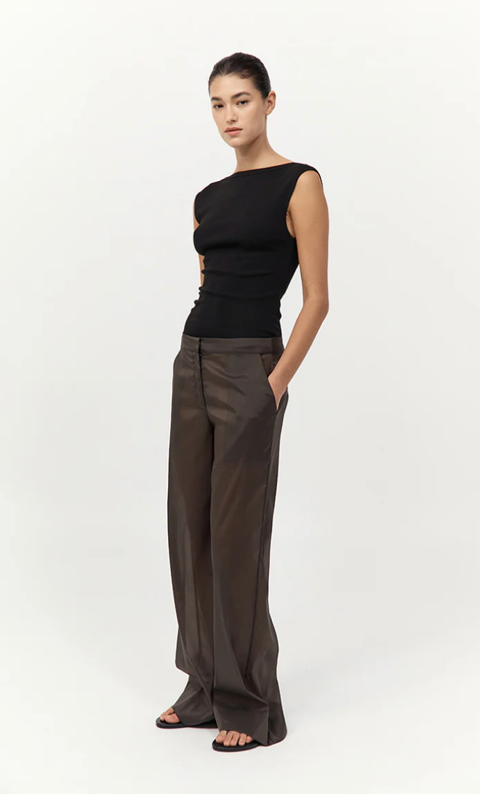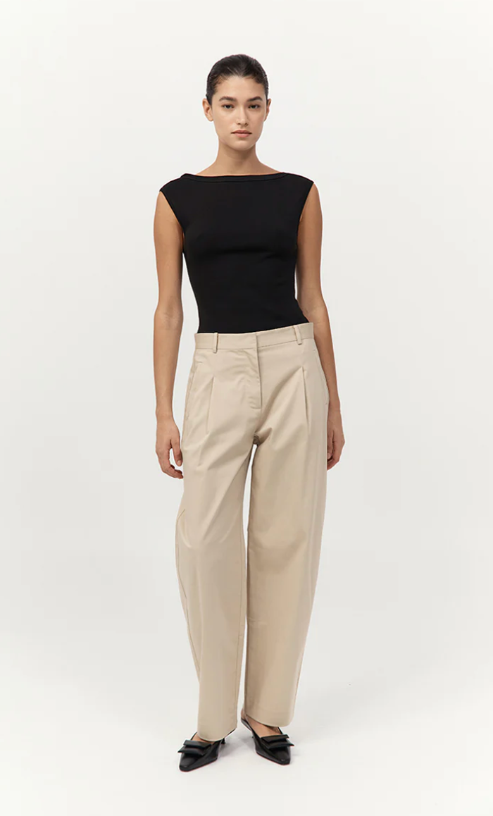 The Organic Cotton Ballerina Top from St. Agni is a refined wardrobe essential. Featuring a bateau neckline and a scooped back, it offers a sleek, form-fitting silhouette that’s both elegant and versatile.