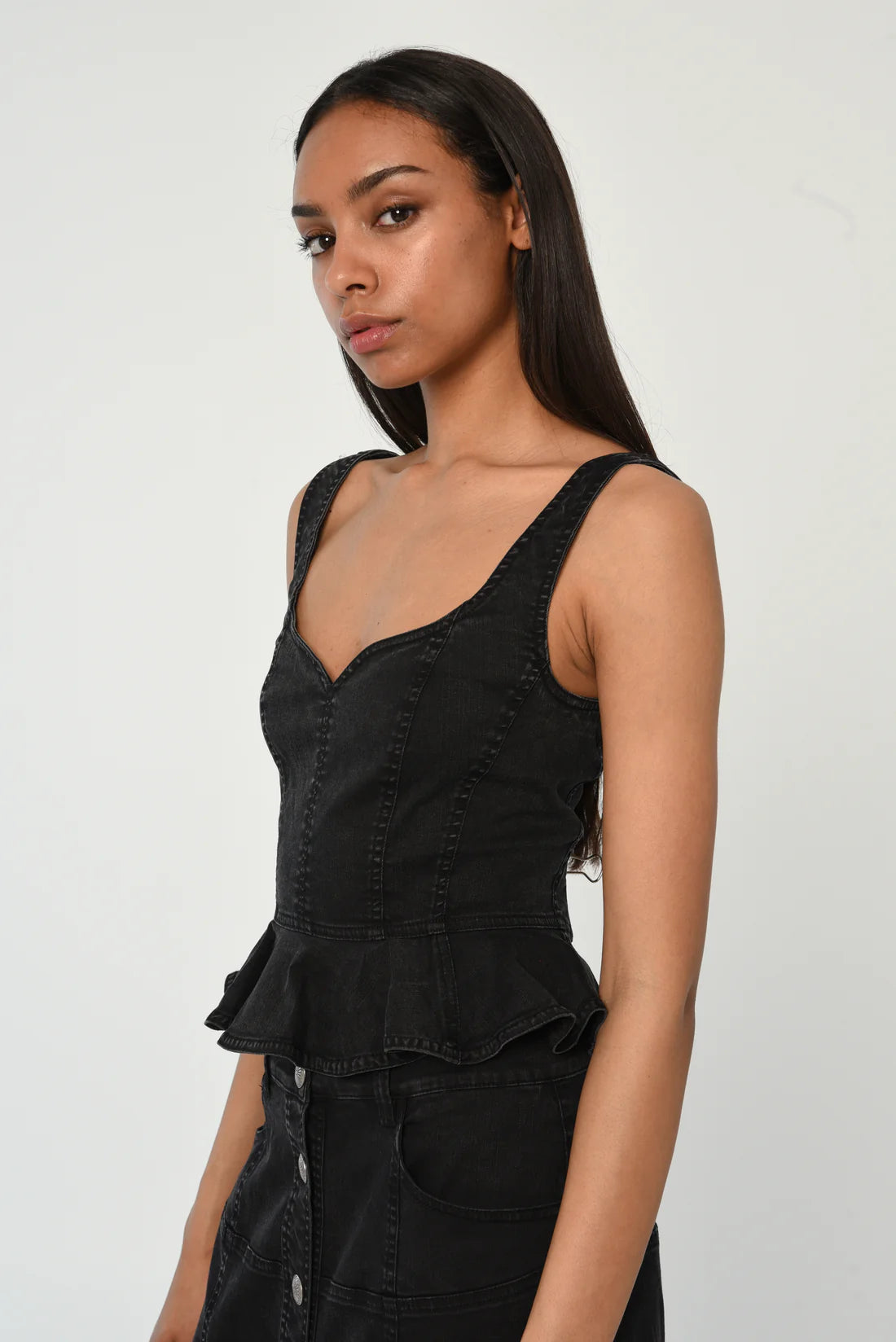 Elevate your denim game with this playful Romeo Top. by Love The Label, crafted from washed stretch denim that moves with you. The sweetheart neckline flatters while the smocked back panel—complete with an edgy exposed metal zipper—adds unexpected flair. A flirty peplum ruffle at the waist creates the perfect silhouette for dancing the night away. Pair it with the Denim Romeo Skirt for an unforgettable head-to-toe denim look that's sure to turn heads at any gathering.