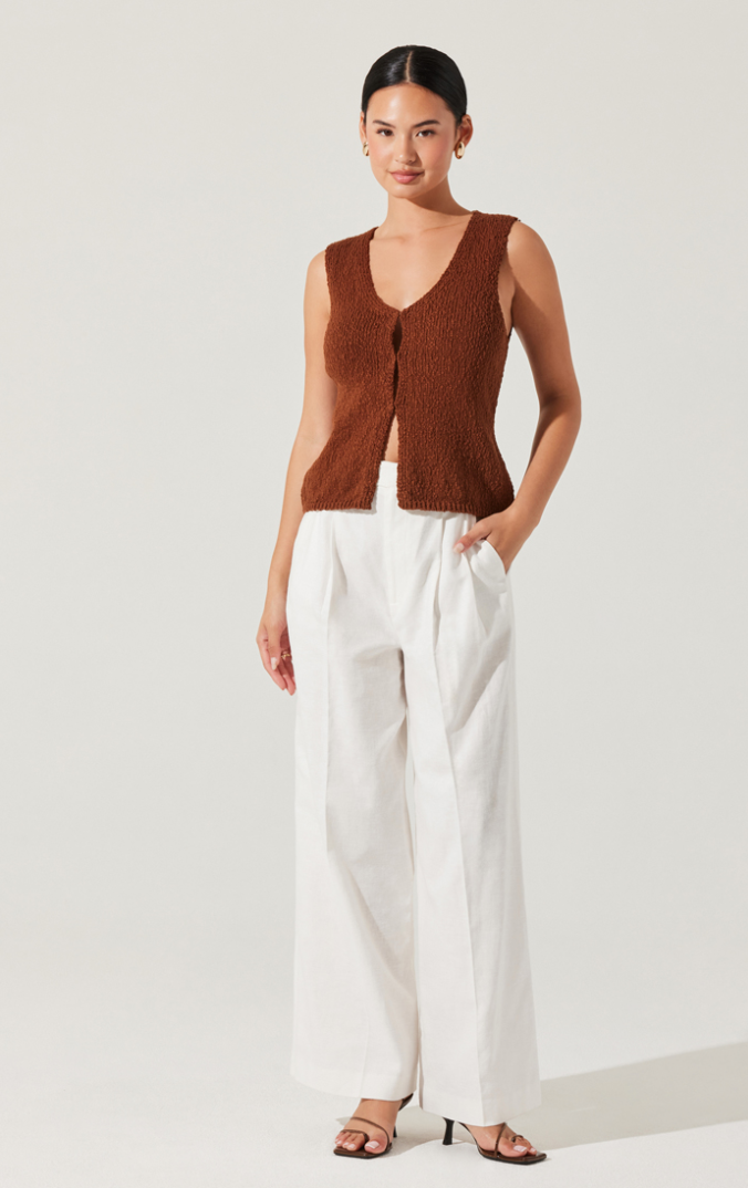 The Taimi Sweater Vest by ASTR is your new go-to for layering with a twist. Featuring an open knit design and playful small keyhole openings at the center front, this vest keeps things breezy and fun. The hook & eye front closure adds a flirty touch, while the intentionally unlined style lets your outfit peek through. Perfect for adding texture and charm to any look!