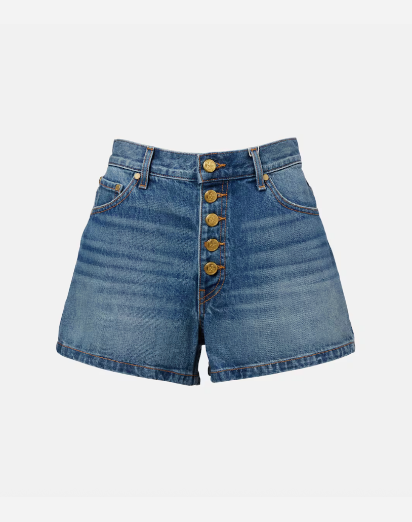 The Greta Short by Ulla Johnson is made from non-stretch denim in a goes-with-anything blue wash that’s beautifully whiskered. It features a classic, five-pocket construction and has a button fly at the high waist with our signature monogram-embossed buttons.