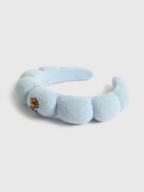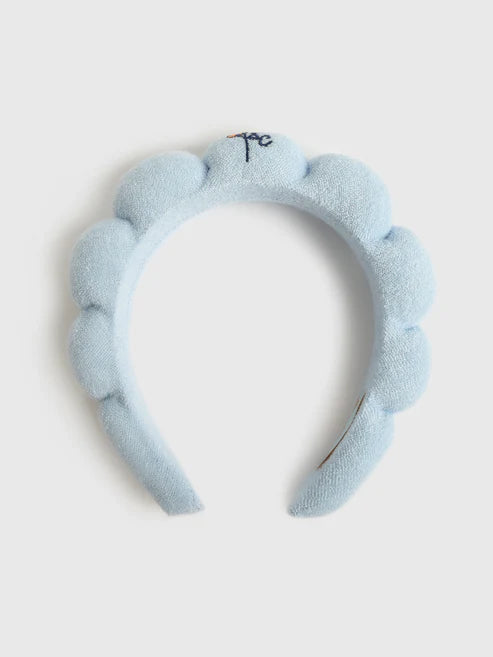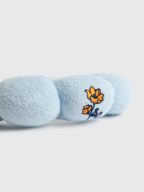 This trendy skincare headband is designed to keep stray hairs at bay. It features a comfortable, puffy texture and a delicate embroidered Saint Crewe flower monogram.