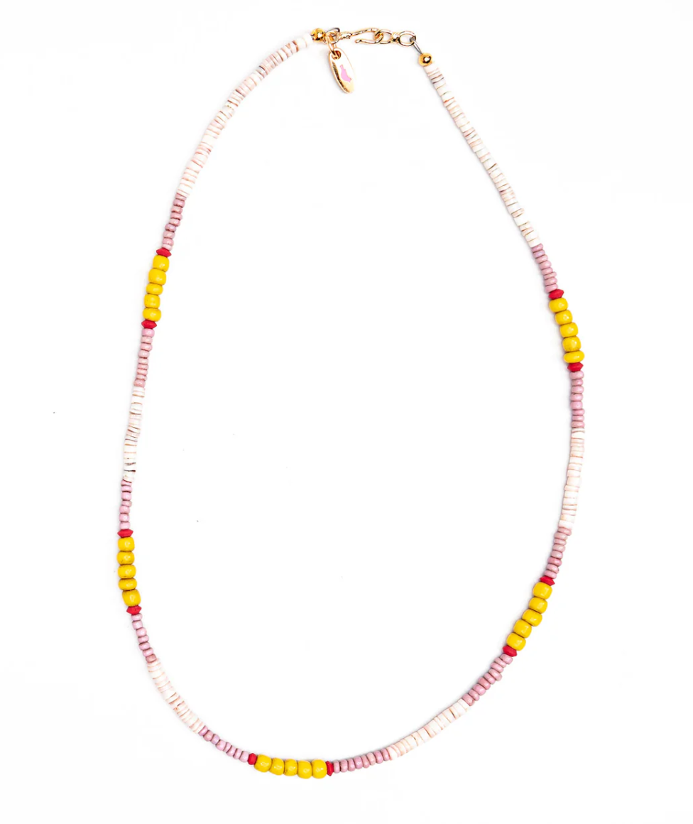 Perfect for layering. Thin conch shell beads with African glass spacers. Measures approximately 17" long.