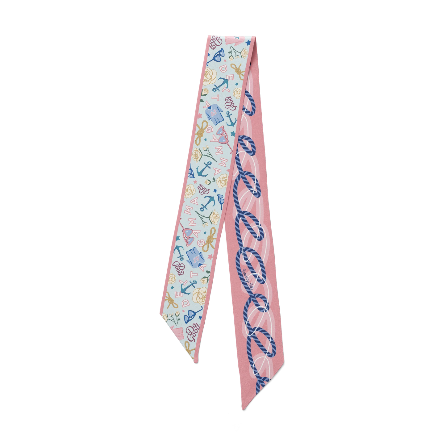 Introducing the Skinny Scarf by Saturday Silks, your perfect companion in style! This 100% silk scarf is double-sided.  At 2in x 36in you can use it to spruce up your 'do, wrap it around your wrist or purse strap for a chic look, and even tie it around a gift box for a special touch! Designed in Houston, Texas, the Skinny Scarf will be sure to turn heads.