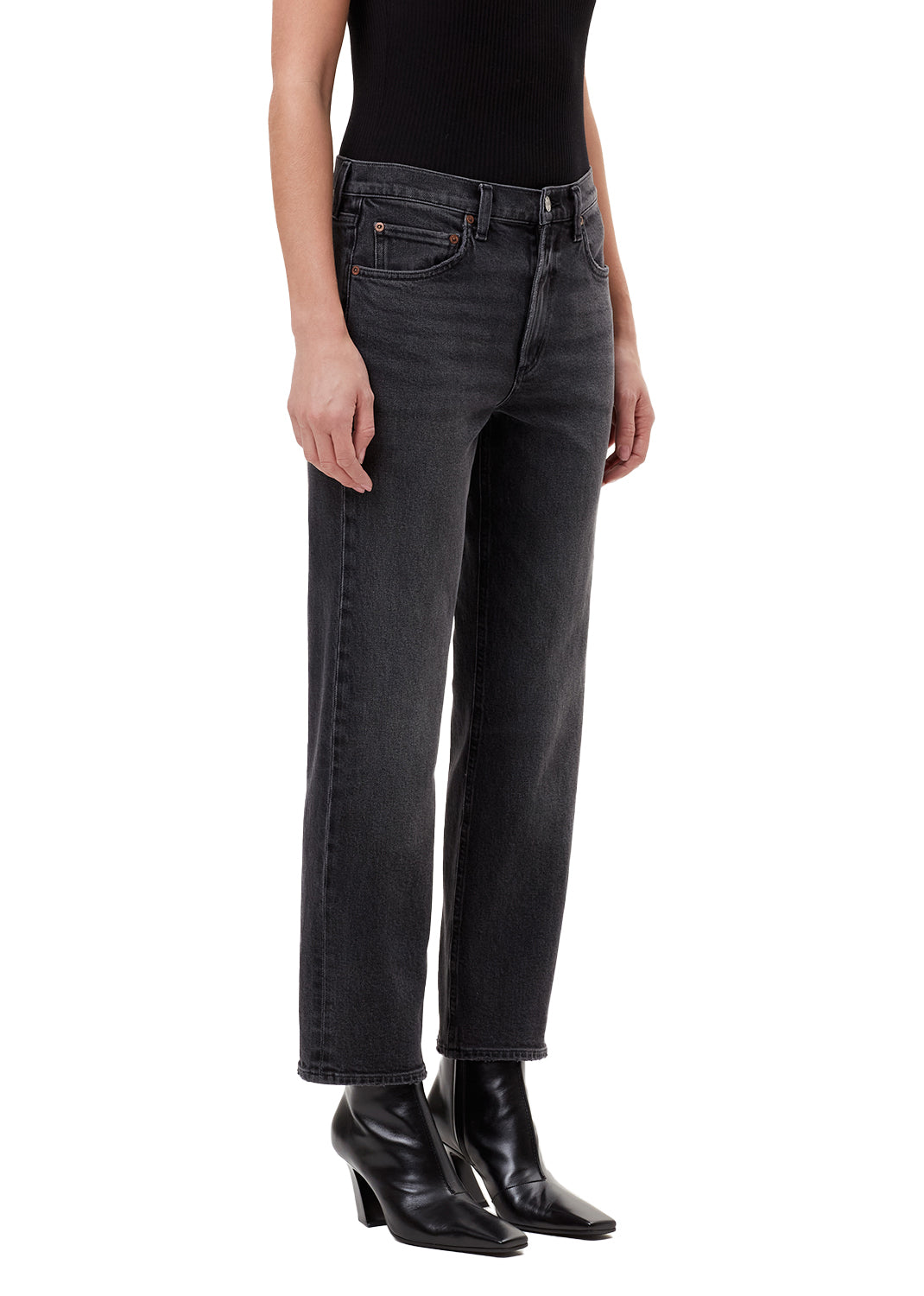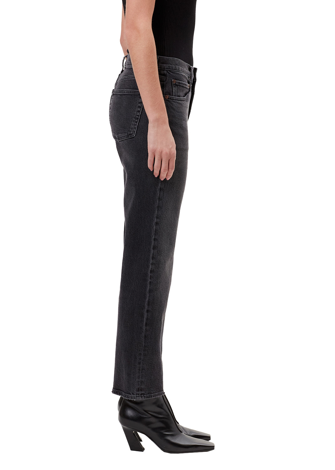Introducing the Valen Jean by AGolde- a timeless straight-leg silhouette with subtle edge. Designed with a mid rise and slim-straight fit through the leg, this pair feels lived-in yet refined—perfect for everything from oversized layers to minimal tanks.