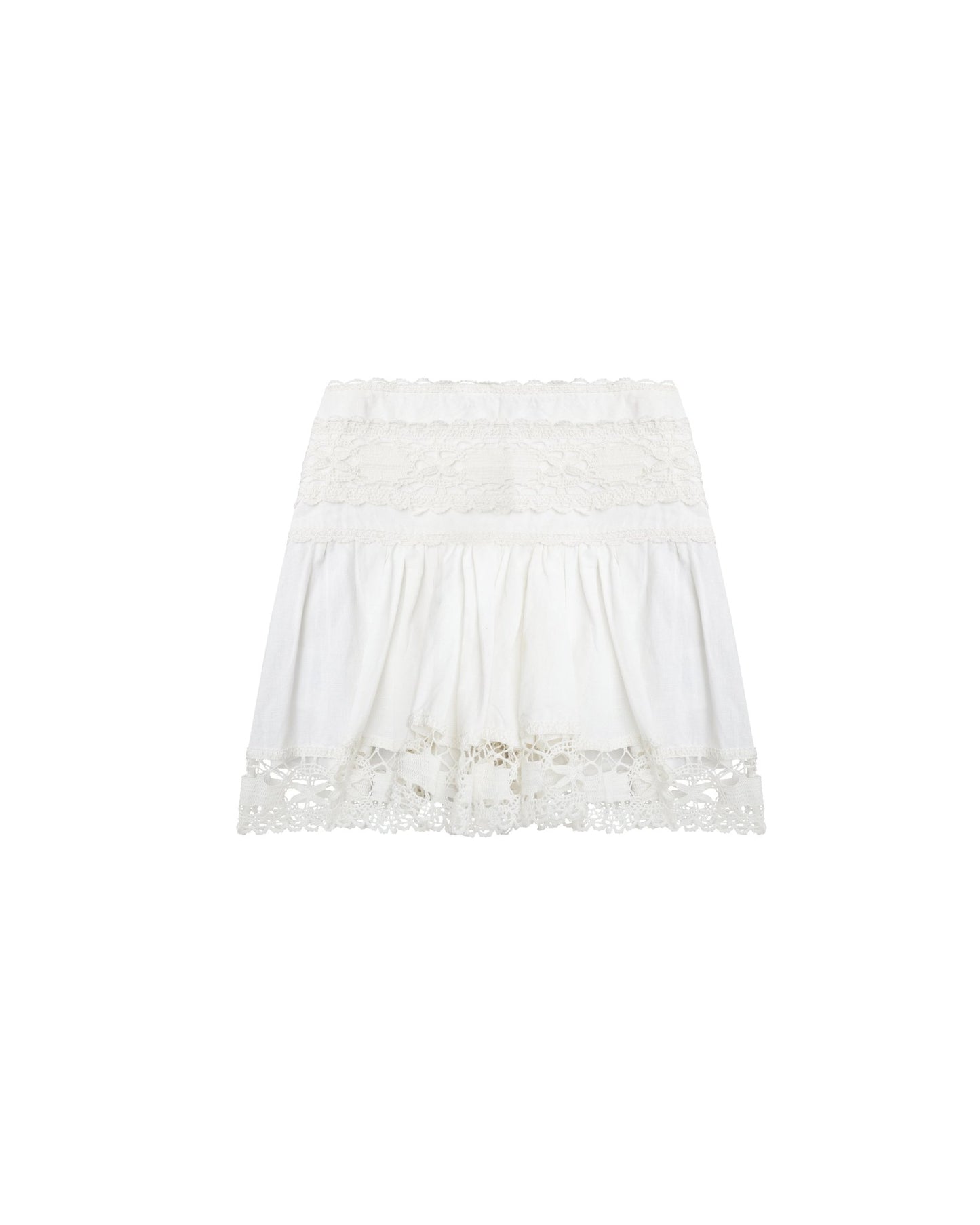 The Violana Skirt from Isabel Marant boasts a fitted waist and a hem that features delicate crochet lace details. Show off your playful side with this unique and quirky mini skirt!